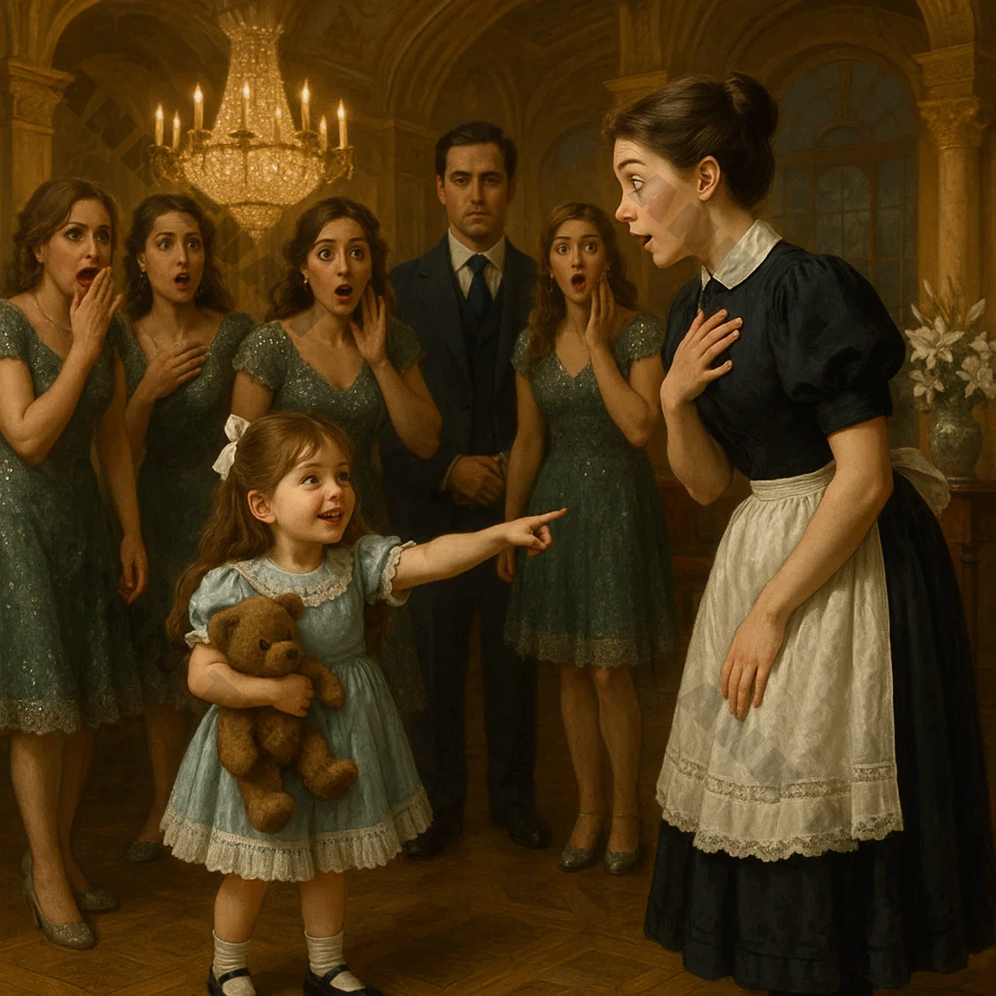 He had always prided himself on his ability to negotiate with foreign ministers, persuade difficult shareholders, and sign billion-dollar contracts in a single afternoon. Yet he had never been prepared for this moment. His daughter, Amelia, only six years old, stood in the center of the magnificent hall wearing her sky-blue dress, clutching her beloved stuffed bunny. Her eyes were round and serious, filled with sincerity. Her tiny pinky finger pointed directly at Clara, the cleaning staff, someone he had never imagined would be chosen in such a situation.