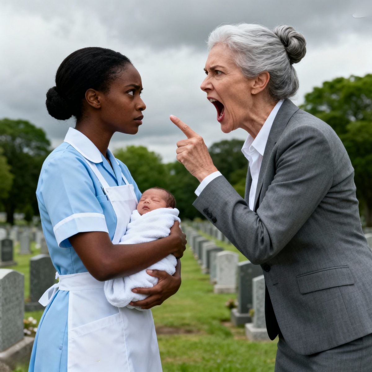 There, kneeling before William’s grave, was a young Black woman in a faded blue waitress’s uniform. Her apron was wrinkled. Her shoulders trembled. In her arms, wrapped in a soft white blanket, was a baby, perhaps a few months old.