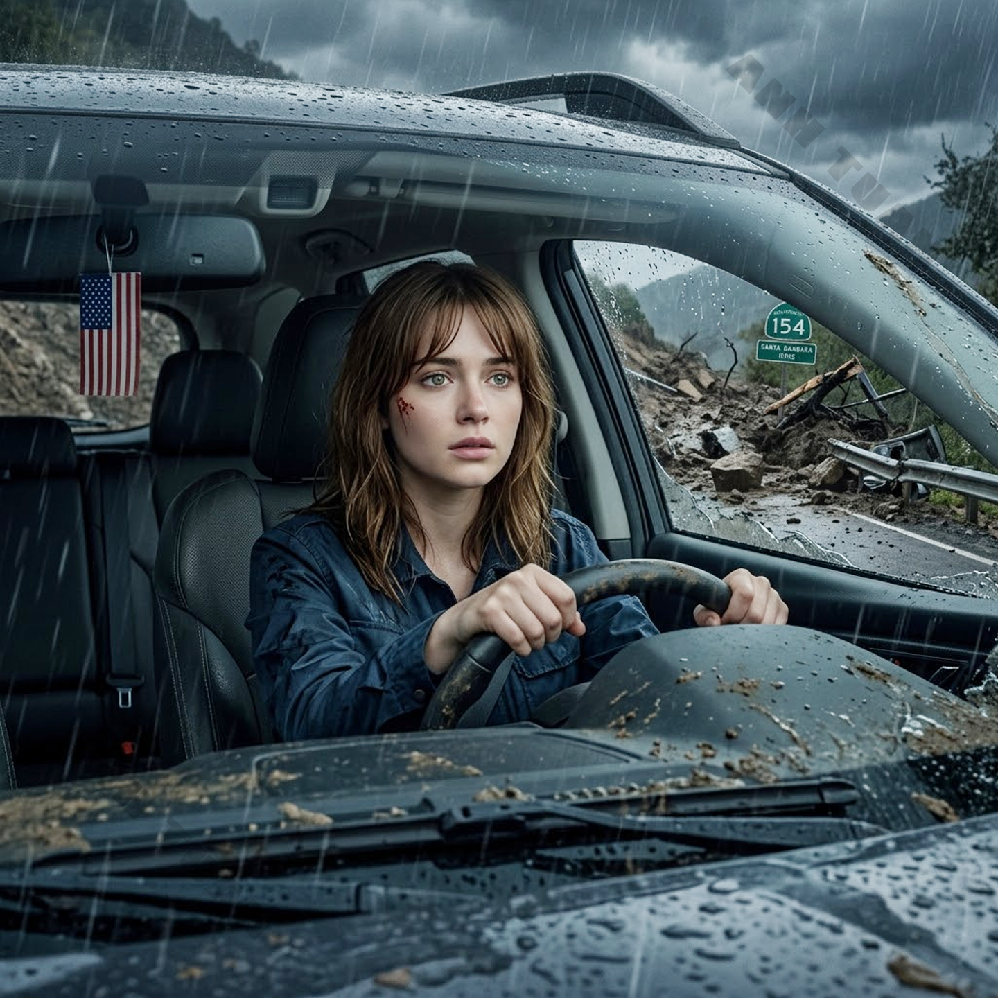 Outside, rain pounded the roof in heavy, flat strikes. The air smelled like wet dirt and pine sap and something newly broken. When I tried my door, it opened a crack and then resisted against packed debris. On the passenger side, the shoulder had partially collapsed into a wash of mud and runoff. We were not dangling over a cliff, thank God, but we were pinned awkwardly enough that every shift of weight felt dangerous. I called 911. The line cut once, then held. The dispatcher, calm in the professional way I will always be grateful for, took our location as best I could describe it and told me several slides had been reported across the canyon roads. Rescue units were tied up. We were instructed to shelter in place, conserve battery, and wait.