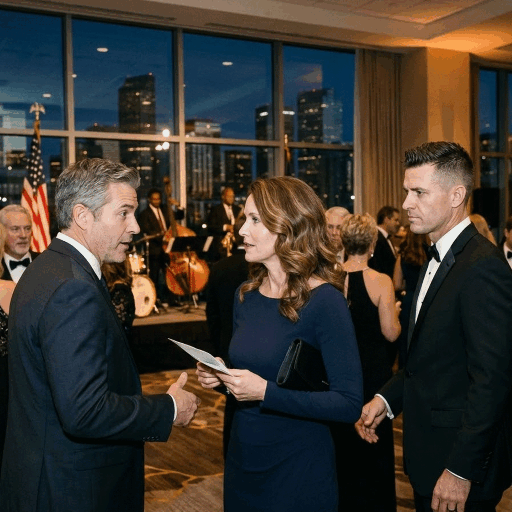The reception was held in a ballroom upstairs, and I noticed the irony the moment we entered. I had spent years attending events in rooms like that beside Fletcher, standing slightly behind him, smiling on cue, measuring my words. Tonight, the same kind of room felt transformed simply because I was there as myself.