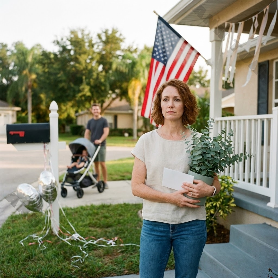 I pulled into the cul-de-sac just after noon, easing my car into the shade of a black olive tree across from Elijah’s new house. The neighborhood looked like the kind of Florida-new that still smelled faintly of mulch and fresh concrete, with neat brick facades, clipped lawns, and identical mailboxes lined up like they were part of a catalog. A small HOA sign sat at the entrance with cheerful lettering and a list of rules tucked into the fine print, as if order could be sold as comfort. Two porches down, an American flag hung from a bracket and snapped lightly in the breeze, bright against the clean, pale siding.