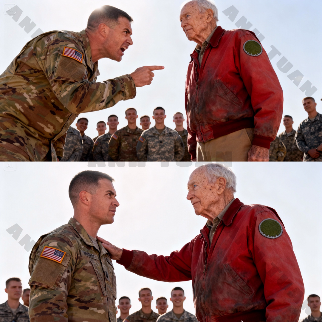 Behind him, a few young soldiers, emboldened by the sergeant’s tone, let out suppressed giggles quickly stifled by the oppressive heat. For them, this was a gift. An unexpected play breaking the soul-crushing monotony of the drills. They saw what Evans saw: a confused old man, a harmless relic who had wandered astray somewhere between the parking lot and the base museum. They saw the plain khaki pants, the faded jacket fifty years past its prime, and the strange, indistinct insignia on his sleeve—a dull blue circle with smudged gray stitching they couldn’t make out. A few nudged each other, whispering jokes about the antique store he might have stolen the outfit from.