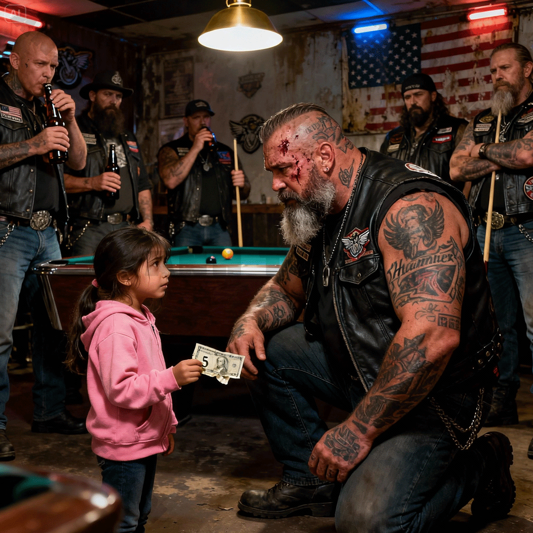 The five-dollar bill went up on the wall above the bar, framed in cheap wood, a permanent testament to the turning point. It became legend. Over the next year, the Iron Brotherhood helped twelve more families, mothers escaping abuse, children in danger. Our reputation for toughness became a shield.