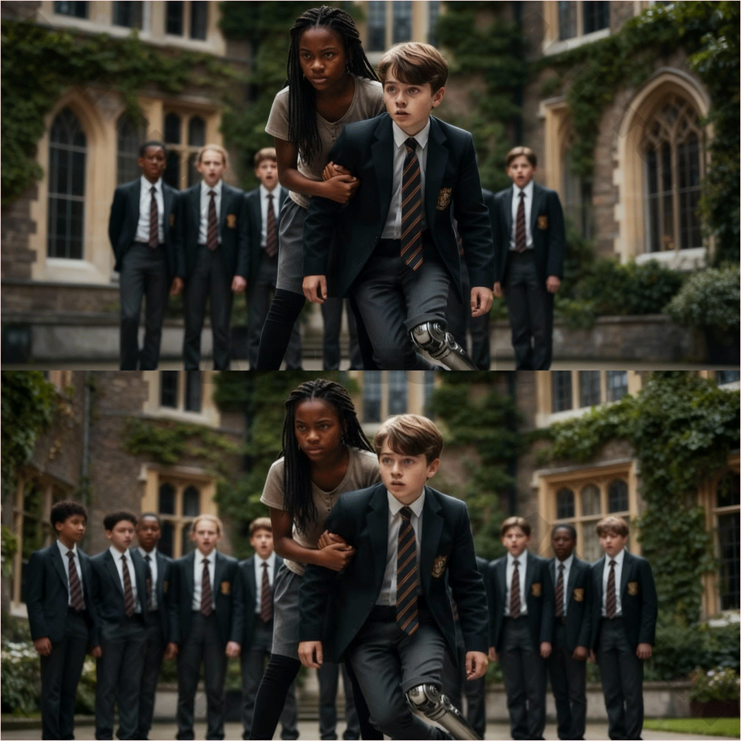A week later, rumors had spread across St. James about the new black girl and the one-legged millionaire boy. The cruel laughter persisted, but there was now caution. No one dared tease them directly when Maya stood beside him, yet whispers and scrutinizing eyes lingered, creating a tense, uncomfortable atmosphere.