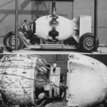 The Hiroshima bomb little boy consists of 64 kg of enriched uranium to produce 15 kiloton blast. By comparison, Nagasaki bomb the fat man consists of only 6.4 kg of plutonium to produce 21 kiloton of blast, meaning that fatman is more efficient than little boy. Fat Man was built by the scientists and engineers in the Los Alamos laboratory at the Manhattan project.