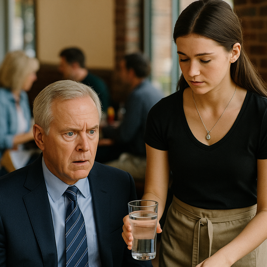 When she returned, she placed the glass in front of him. It was then that the tycoon looked up… and everything changed.