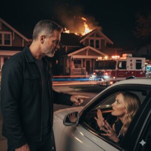 Across the street, sitting in her white Lexus with the engine running like she might leave the second the show ended. Brin Madsen—HOA president—hands on her steering wheel, face lit by the firelight, watching like she’d paid for a front-row seat.
