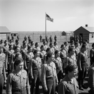 By April 1945, more than 150 German women were housed at Camp Gruber. They lived in separate barracks, followed structured routines, and formed a small world within the larger camp.