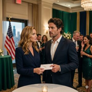 I scanned faces. Morrison and Blake colleagues everywhere, expensive smiles, practiced posture, the kind of crowd that can smell weakness the way sharks smell blood. Victoria’s parents hovered near the champagne fountain, stiff and uneasy, like they’d been told the script but not the ending. And near the stage, where the opening remarks were supposed to be delivered, stood Nathan Cross beside my wife with a posture that said ownership, not support.