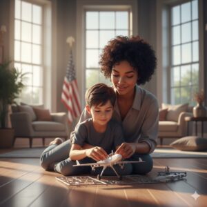 One afternoon, Sha struggled with a model airplane, his small fingers unable to fit the pieces together. Frustration marked every line of his face. Victoria knew that if she didn’t intervene, disappointment would overwhelm him once more. She knelt, carefully fitting the piece into place. Sha looked at her, and for a brief moment, a fragile smile appeared at the corner of his mouth. Victoria smiled back—a connection was formed, a thread linking Sha to the world around him.