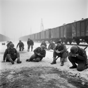 Outside, the soldiers of the 45th Infantry Division moved through the camp, their boots crunching over frozen mud. Some soldiers, young men from Oklahoma and Texas, sat down in the snow, hands trembling as they tried to hold back tears. Others vomited. Rage coiled tight in their chests, a cold, inexorable fire. They had faced death before, in Italy and France, but never like this. Never stacked in trains, left to rot in the snow, victims of human cruelty unrestrained by morality. They looked at the SS watchtowers and tightened their grip on their rifles. The Geneva Convention seemed a world away.